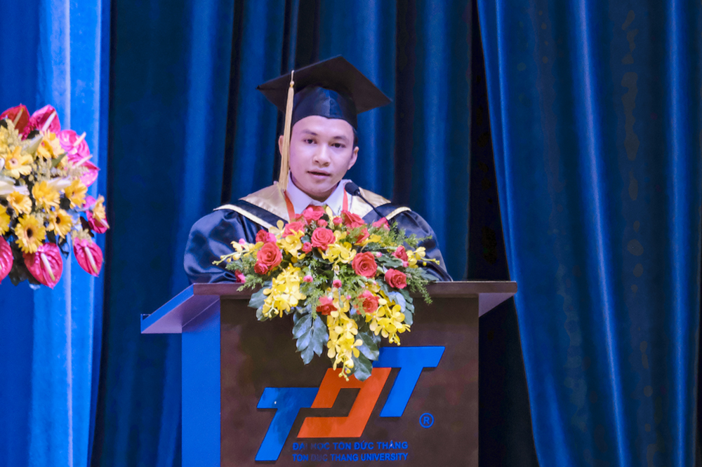 Phát biểu tại Lễ tốt nghiệp, GS. Lê Vinh Danh, Hiệu trưởng TDTU chúc mừng các Tân thạc sĩ, cử nhân, kỹ sư, kiến trúc sư đã hoàn thành tốt chương trình học của mình. Hiệu trưởng cũng cám ơn các anh chị vì đã cố gắng, nỗ lực vượt qua khó khăn để hoàn tất chương trình học tập nhiều gian khổ; trở thành những lao động chất lượng cao của xã hội.